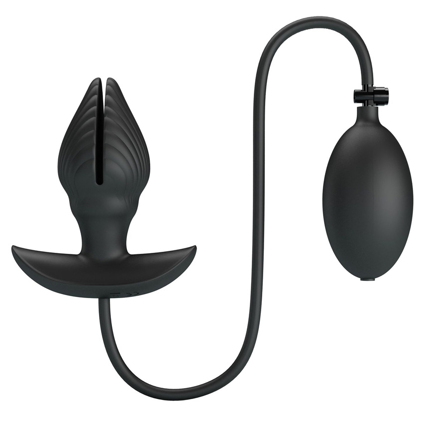 Чёрная анальная втулка-эспандер с вибрацией и грушей для необыкновенно приятной функции расширения.